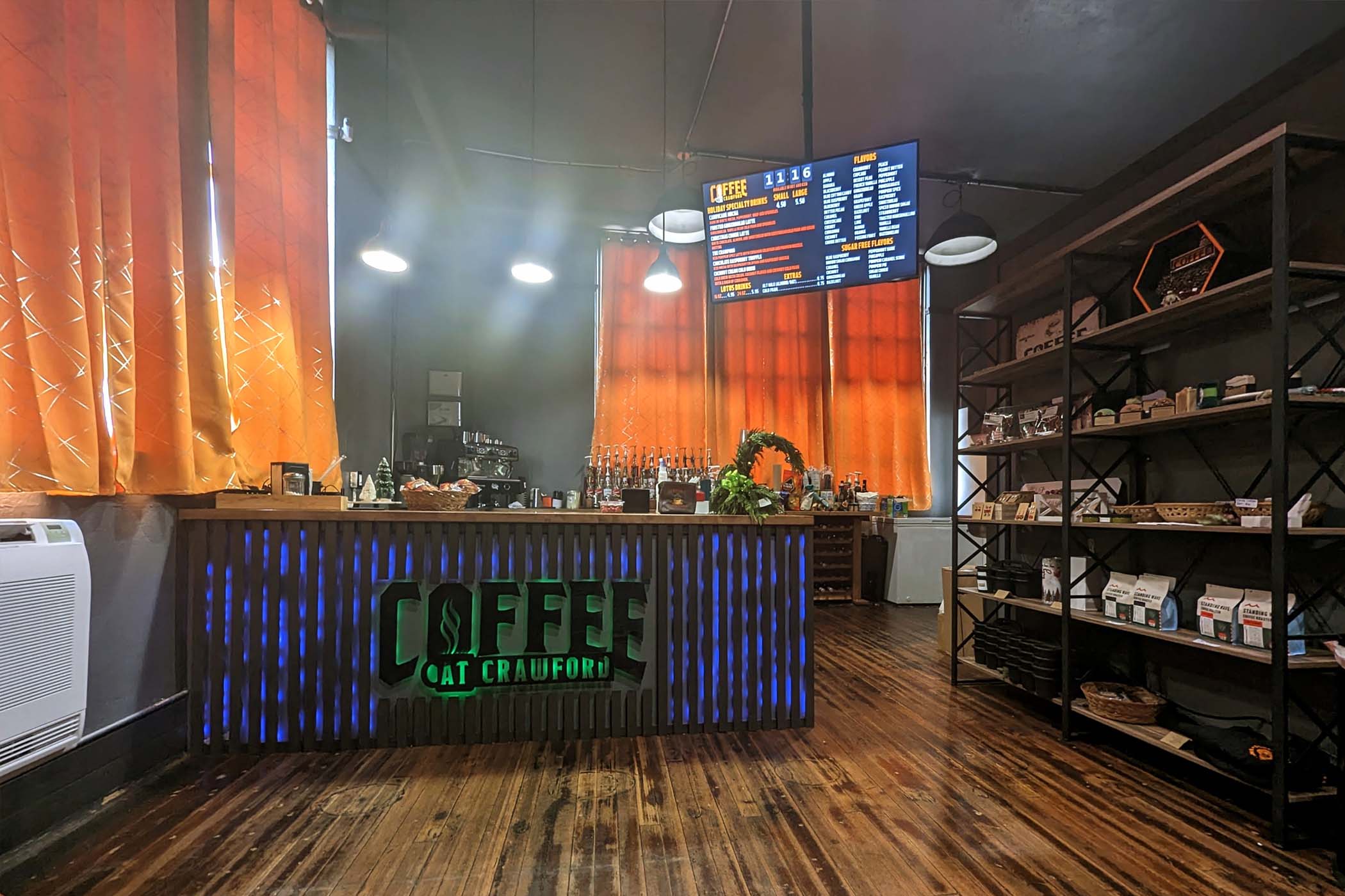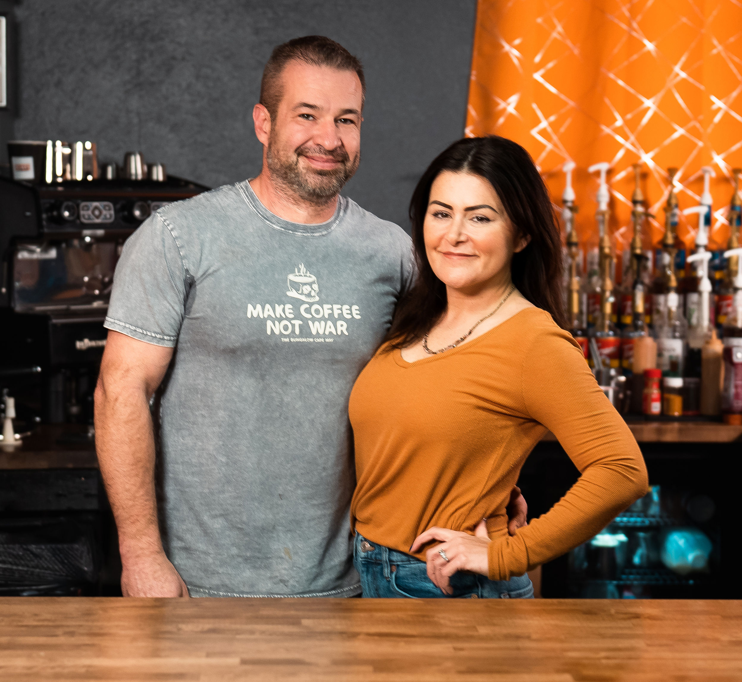 Our names are Suzie and Troy Flesik and we started Coffee at Crawford to fill the absence of a local coffee shop in Connellsville, PA. Along with Coffee at Crawford, we also are owners of Escape Crawford, an escape room, Crawford Axe Throwing and Crawford School of Terror, a haunted house, which are all housed in the old Connellsville school building.